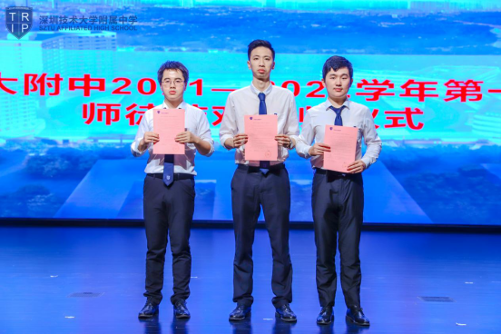 为了充分发挥骨干教师的示范引领作用,加大对青年教师的培养力度,打造一支素质过硬、业务精湛的师资队伍,推动学校教育教学质量快速提升,9月28日下午,深圳技术大学附属中学在多功能报告厅举行第一届“青蓝工程”师徒结对拜师仪式。教务处尹有存主任主持会议,田祚鹏校长、办公室覃君杨主任、总务处吴川主任、青蓝工程全体指导教师及青年学员出席本次活动。