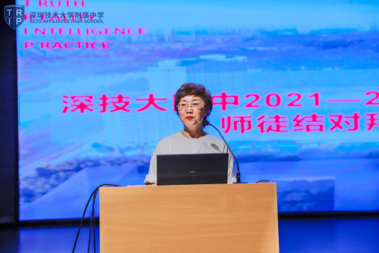 孟琳琳老师表示,在今后的教育教学工作中,会认真履行指导教师的应尽职责,言传身教,率先垂范,毫无保留地传经送宝;在青年教师遇到困难时,一定给予真诚的关心与帮助,扶持他们走出困境,为深技大附中新教师培养工作尽最大力量,不辜负学校的信任和嘱托。她还勉励大家,要带着初心与使命、梦想和坚持,不骄不躁、不怒不怨,携手前行,今天的师徒结对,明天定会结出丰硕的果实!