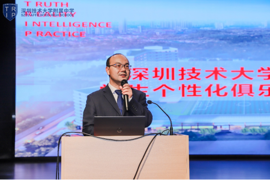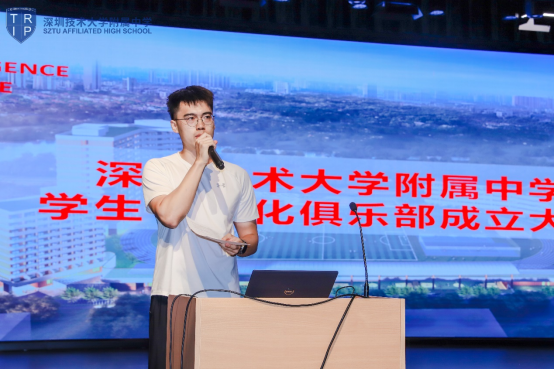 最后,学生处主任邓怀涛总结致辞并宣布深圳首创--深圳技术大学附属中学第一届学生俱乐部正式成立。他深情寄语全体同学,学生个性化俱乐部,是深圳市首创,是田祚鹏校长的“扬长教育”的教育理念的充分体现,学校会完全放手让学生自己去组织,自己去设计,自己去参加。希望大家能把握住机遇,发挥出特长,燃烧起热情,成为学校活动的真正主宰,在活动中得到锻炼成长,把高中生活过得丰富多彩,为自己的青春涂上靓丽的色彩!