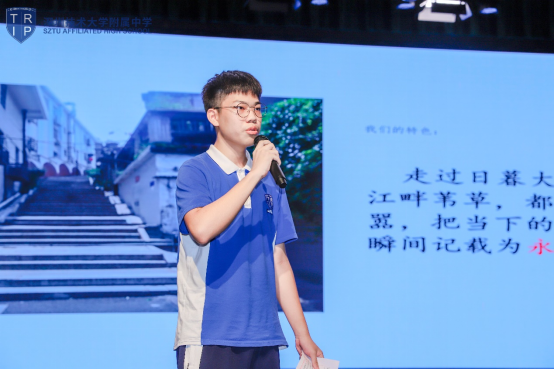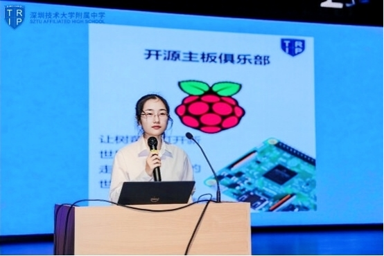 各俱乐部部长上台展示多彩创意,精美的PPT,感人的视频,视角独特的照片,生动的语言,每个精彩绝伦演讲的结束,都为深技大附中学子的未来打开另一扇窗。