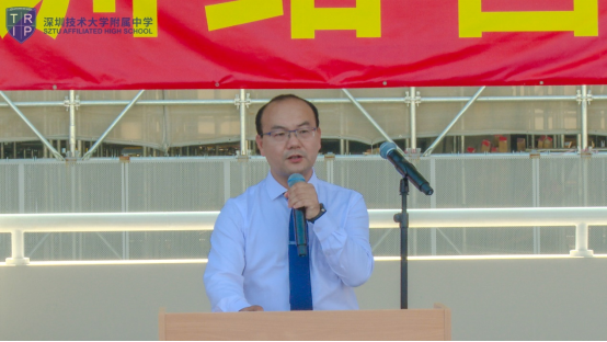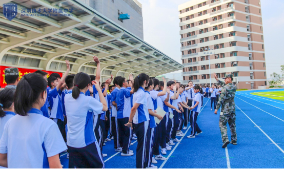 最后,田校长发表了结营讲话。他对此次的军训成果表达了高度肯定,感谢坪山区人武部各位领导、教官的辛苦施训和无私奉献;感谢全体班主任和教师的全程管理和服务;感谢学校各处室的尽职尽责;感谢同学们不畏烈日、战胜自我,不怕苦、不怕累。他对同学们在仪态仪表、内务整理、心理素质、组织纪律性、团结协作精神、集体主义精神等方面表现出来的崭新风貌和可喜进步感到非常骄傲与欣慰。田校长直言,在当下恶劣的国际环境下,高中生的军事训练显得尤为重要。技大附中的青年一代要响应习近平总书记的号召,要有理想、有本领、有担当,努力成为祖国未来的建设者和引领者。他指出,今后三年的高中生活是一场更加充满挑战的“军训”,他希望同学们用更强的脑力、更多的心力和更坚的意志去克服一个又一个困难,攀登一个又一个高峰。