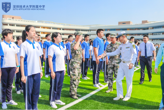出席本次仪式的领导有坪山区人武部部长夏遵初、我校校长田祚鹏、坪山区人武部政治工作科科长魏来,家委会主任王银英、家委会副主任江映丽、家委会副主任温晓、坪山区人武部徐鹏总教官、总务处主任吴川、教务处主任尹有存、办公室主任覃君杨、高一年级主任黄俊龙和高一年级主任王娟。此次仪式由学生处主任邓怀涛主持。
