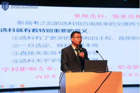 最后,田祚鹏校长做重要讲话。在会议中,田校长表扬了同学们的进步,看到了学生们的成长;也感谢家长对学校的大力支持,如在知道学校停车位紧张的情况下,家长主动组织大巴来学校,在学校食堂就餐时排队秩序井然等等。田校还特别强调培养人的重要性,以学生为本位,处处育人,天天育人,时时育人,要把深圳技术大学附属中学打造成深圳高中教育的优质名片,办出学校自己的品牌、自己的特色,以做中国一流的附中为办学目标。
