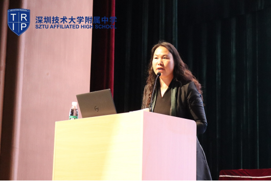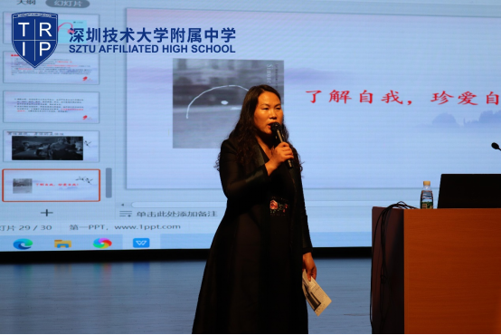 在讲座上,匡老师围绕“青春期女生生理和心理的变化”、“异性交往”和“如何保护自我“三个话题由浅入深、娓娓道来。她的讲解图文并茂、寓教于乐,结合了大量心理学、教育学理论,通过案例分享、提问互动等多种方式给现场的三百多名女生传授了青春期宝贵的一课。