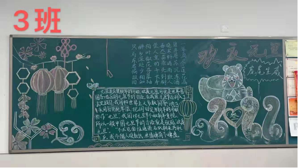 在我校学生处的有序组织下,各班同学精心绘制,用自己的画笔勾勒出了对虎年的美好期望。各班的黑板报主题鲜明、布局合理、图文并茂、富于教育意义,给人一种美的享受!