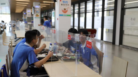 食堂用餐、发放教材、主题班会……经历了疫情期间的网课学习,如今终于重返校园,同学们得以面对面感受老师的智慧与思想,体验教学互动的本真,沉浸于生动直观的课堂气氛。返校后,同学们逐渐找回学习的良好状态:练练字,让心静下来;打开课本,去思考,去倾听,沉浸于学习的乐趣中。