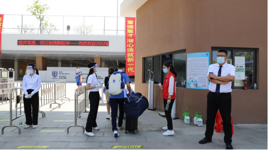 2022年9月15日,碧空如洗,万里无云,上了两周多网课的深技大附中高一、高二学生终于能够满怀欣喜地拥抱他们期待已久的校园了。田祚鹏校长、吴川副校长以及校中层领导顶着酷暑和炎热,早早地就在校门口迎接同学们的到来。