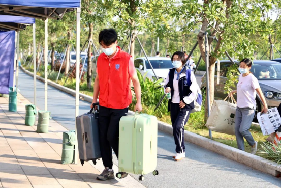 全体教职工提前到位,各司其职,有条不紊地开展工作——帮助学生搬运行李、引导学生入校、疏导学生搬迁宿舍,为学生和家长提供最全面、最周到的服务。