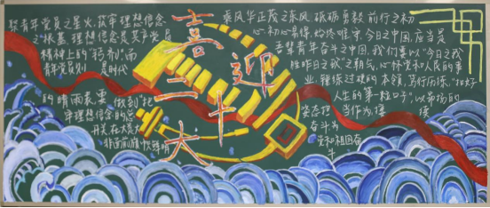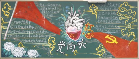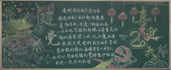 在班主任的精心组织和指导下,同学们积极参与、精心选材、明确分工,充分发挥自己的聪明才智,把对党的热爱和祝福融入文字和图画中,创作出一幅幅美观大方的黑板报。