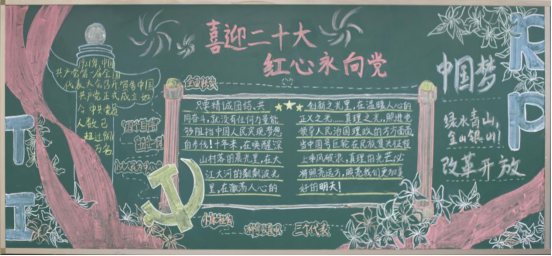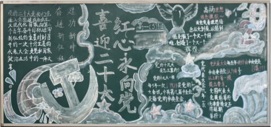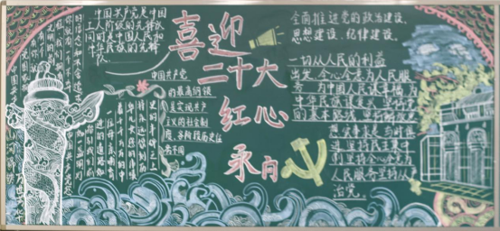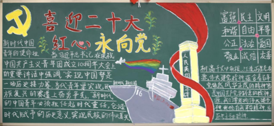 此次黑板报比赛,是我校“喜迎二十大,红心永向党”系列主题教育的一项重要活动,充分诠释了同学们“感党恩,听党话,永远跟党走”的誓言和决心,充分展现了全校师生“青春心向党”的积极向上的精神风貌。